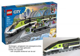 60337 Personentrein nieuwe set van Lego + Eindwagon, aangepast met passagiersruimte - combinatie van basisloc en personentussenwagon en eigen creativiteit. Dit past perfect als eindwagon bij set 60337. Hierin kunnen ook gewoon passagiers in zitten. Is in orginele doos bijgevoegd