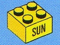 3003pb066Yellow Brick 2 x 2 with Black 'SUN' Pattern