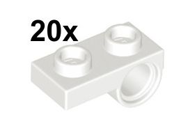 18677#20 White Plate, Modified 1 x 2 with Pin Hole on Bottom