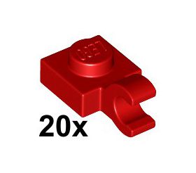 61252#20 Red Plate, Modified 1 x 1 with Open O Clip (Horizontal Grip)