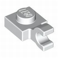 61252 White Plate, Modified 1 x 1 with Clip Horizontal (thic