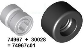 74967c01 Light Bluish Gray Wheel 8mm D. x 9mm, Hole Notched for Wheels Holder Pin, Reinforced Back with Black Tire 14mm D. x 9mm Smooth Small Wide Slick (74967 / 30028)